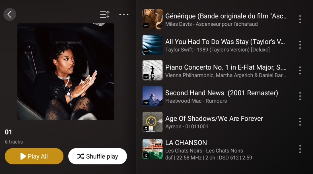 支援音訊格式:DSD(DSF、DFF、SACD ISO 支援DST 解碼至 DSD512)MP3、APE、WAV、FLAC、AIFF、ALAC、NRG、CUE